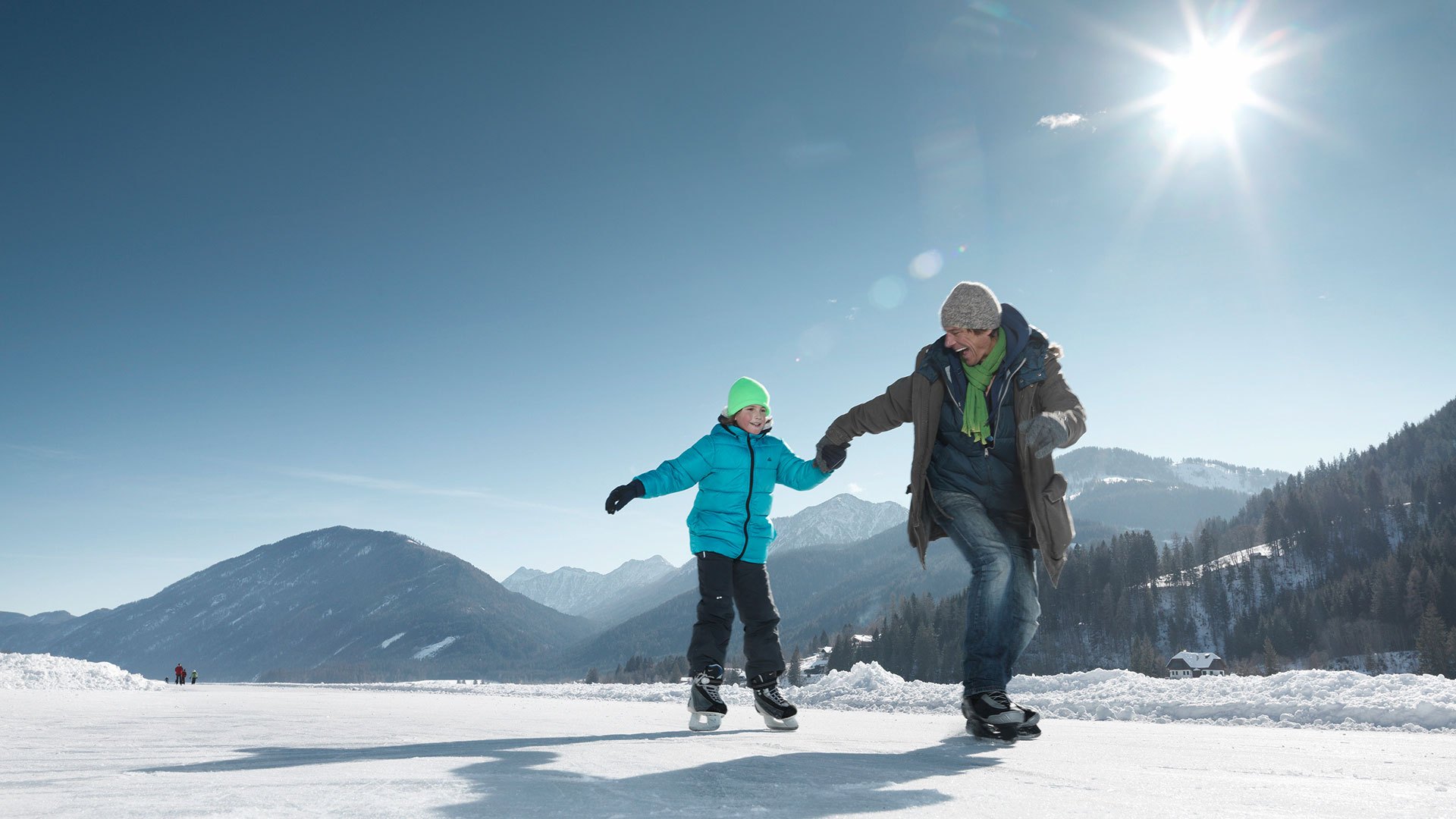 Verschiedene Aktivitäten im Sommer und Winter rund um den Weissensee. Im Winter erreichen Sie die Natureisfläche in wenigen Gehminuten.