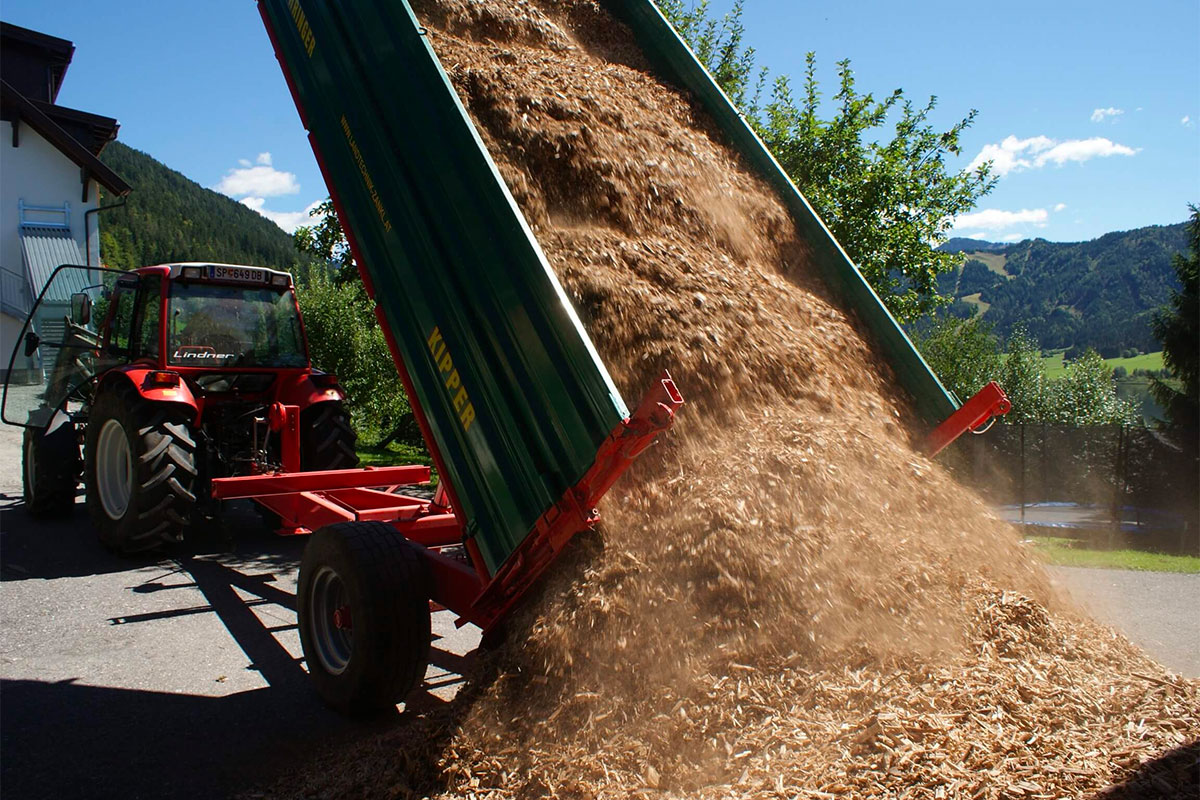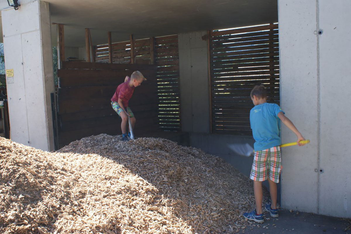 Die Hackschnitzel fürs Heizen kommen vor allem aus dem eigenen Wald. Beim Durchforsten fällt Schnittgut oder Altholz an – ans Regionale und Nachhaltige wird hier einfach immer gedacht.