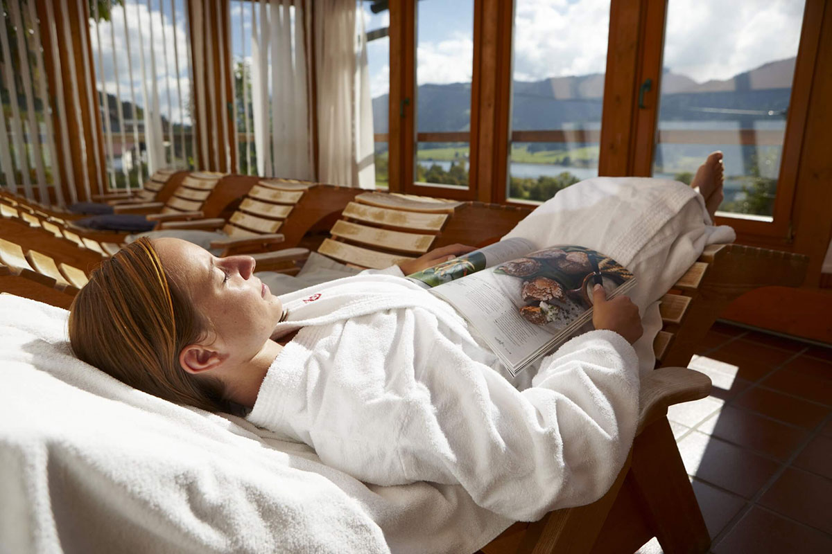 Der Panorama-Ruheraum mit Blick auf den Weissensee bringt Sie zum (Tag-)Träumen
